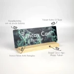 📌 Hangi malzemeden üretilmiştir?– Akrilik tabela ve ahşap stand kullanılarak üretilmiştir.