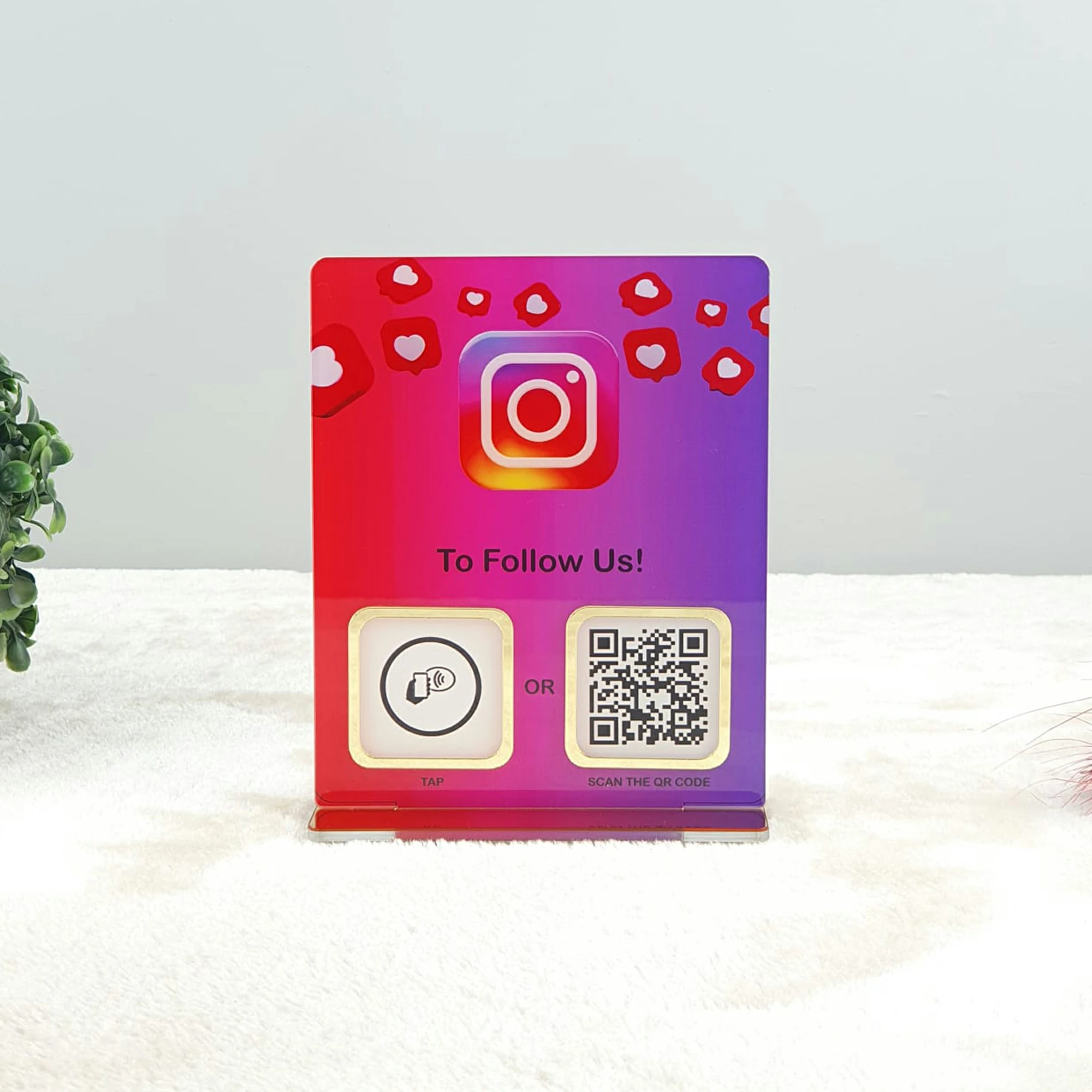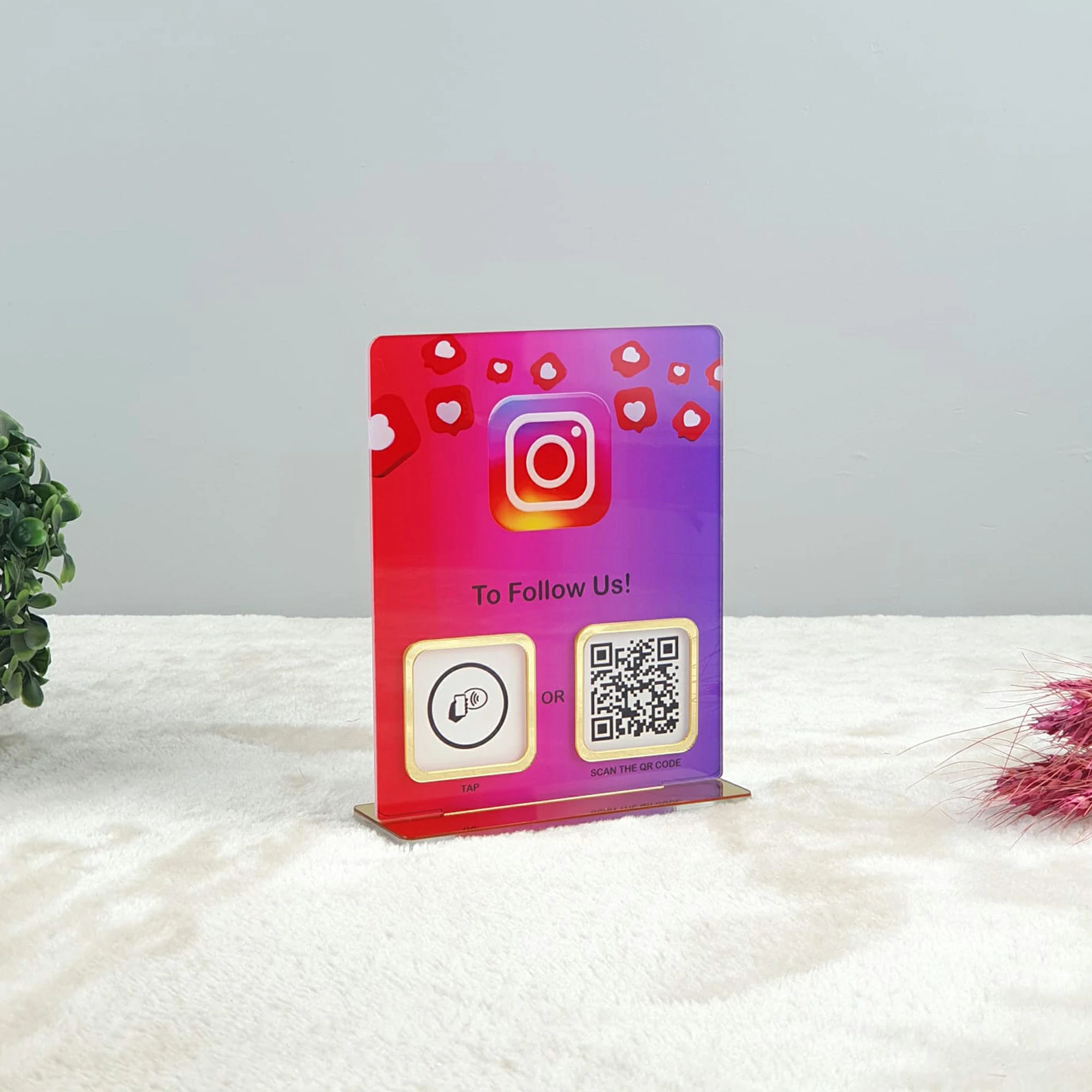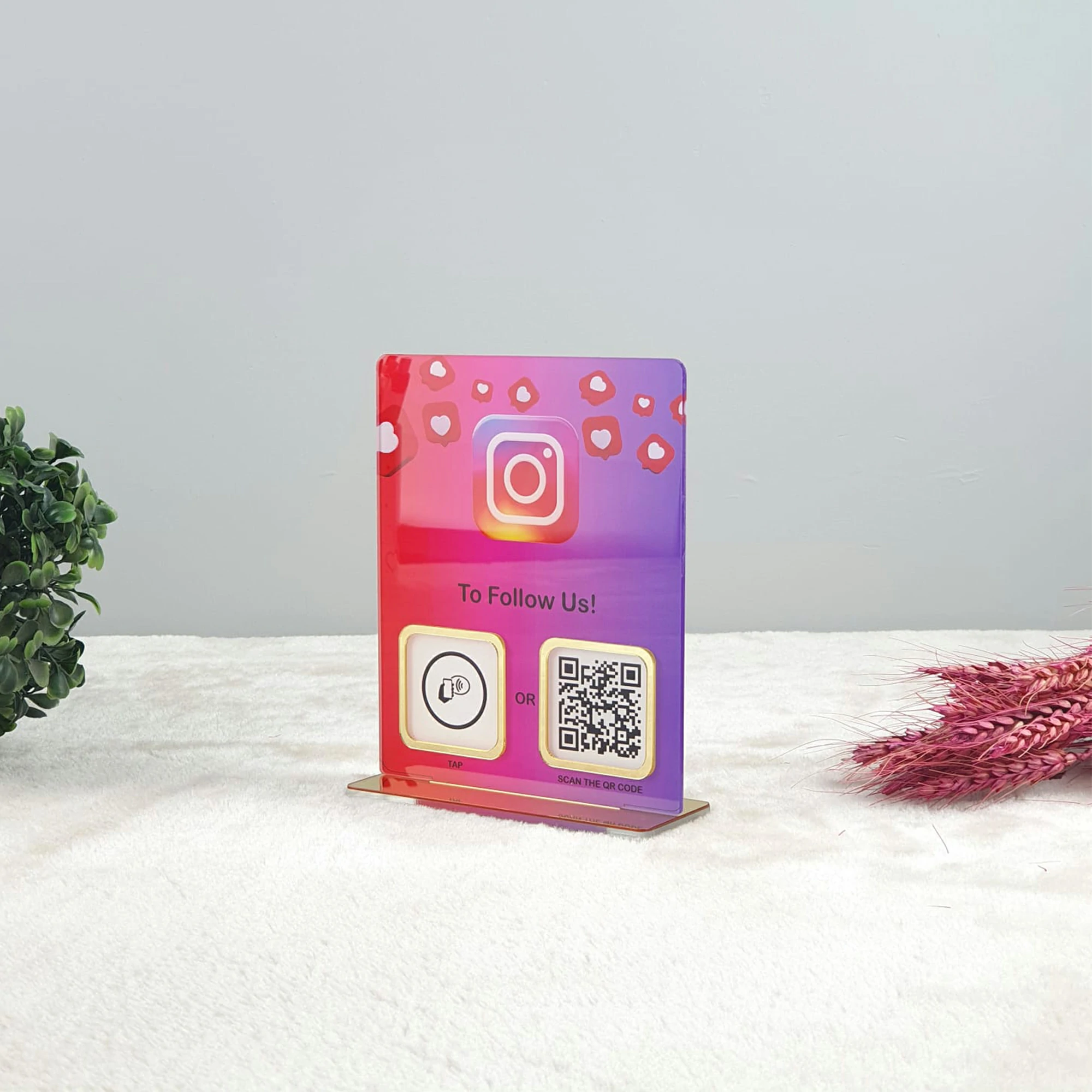 Bu Tek QR Kodlu NFC Destekli Instagram Tabela, iş yerinizin profesyonel görünümünü artırırken, aynı zamanda müşteri etkileşimini ve memnuniyetini sağlamada mükemmel bir çözüm sunar.